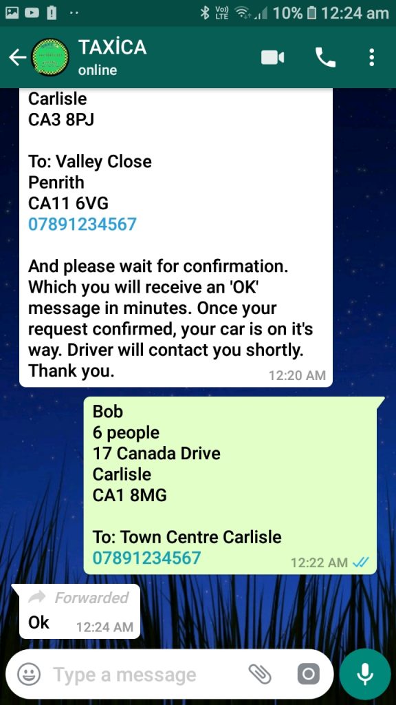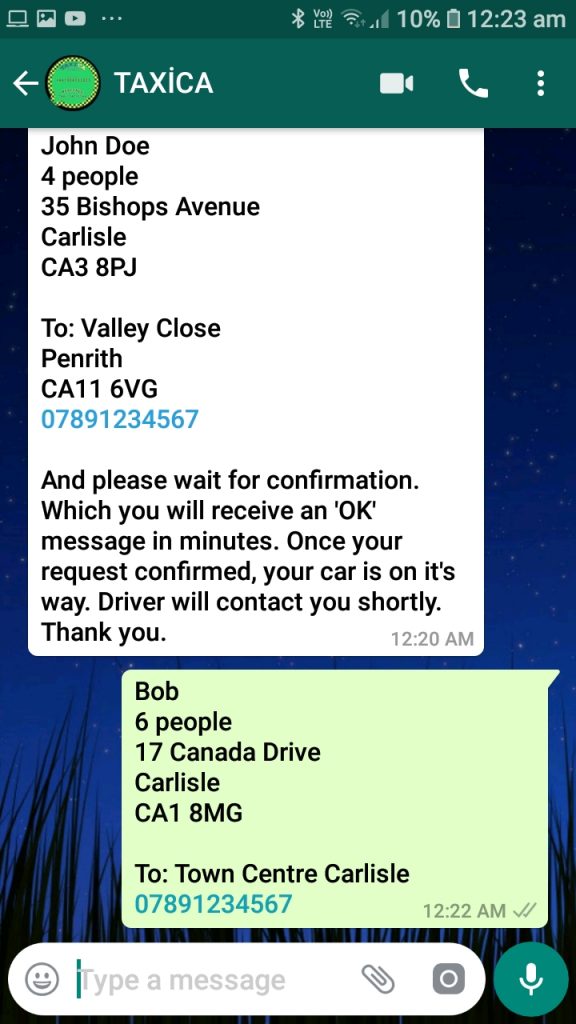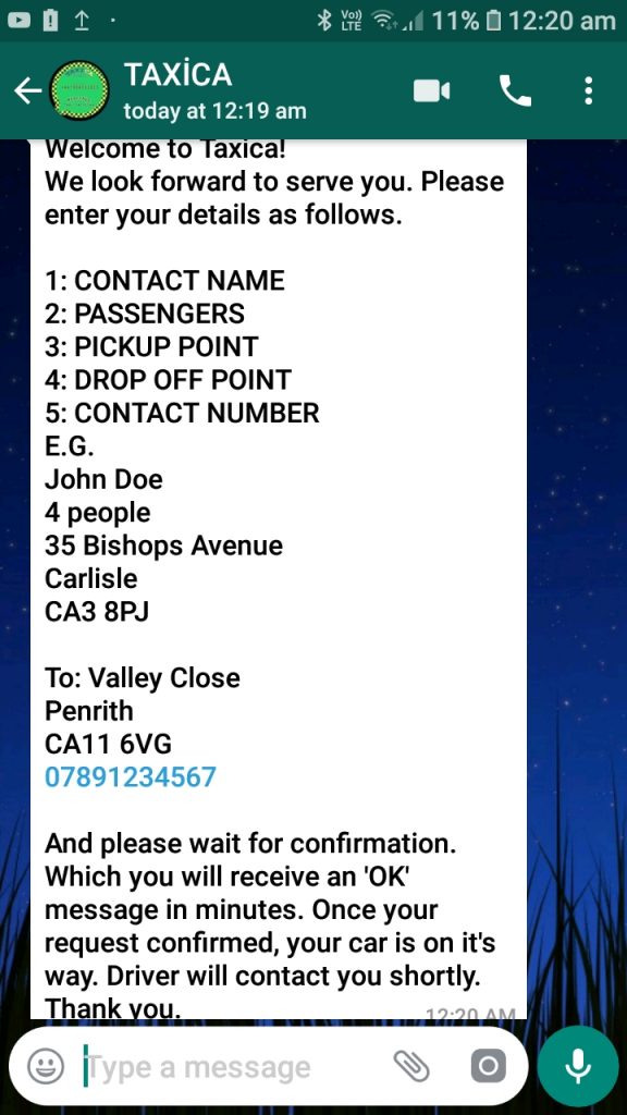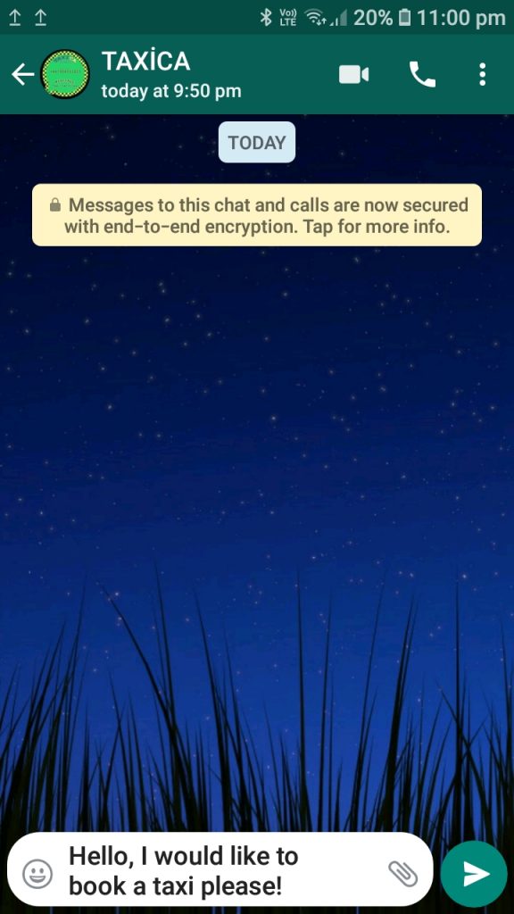 Once you tapped the image, it will automatically take you to WhatsApp messenger, with a pre typed message to book a taxi. Alternatively, you can always change the message.